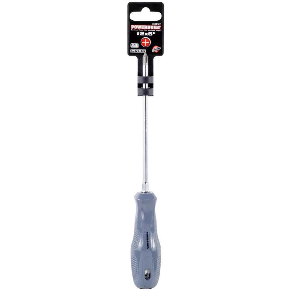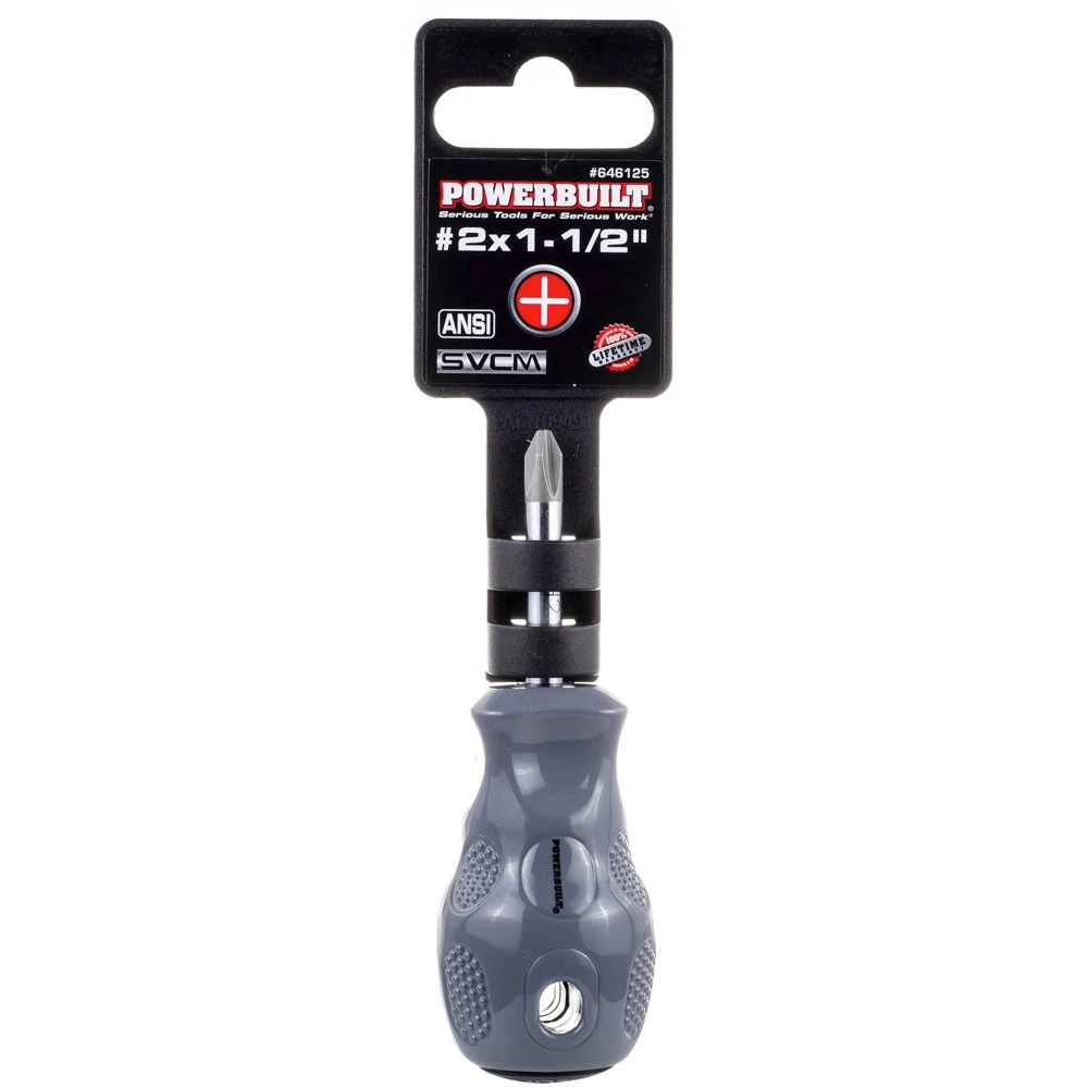 This line of Powerbuilt screwdrivers feature drivers that are built with single injection Acetate handles for maximum comfort and grip. Shafts are constructed of (SVCM) Silicon Vanadium Chrome Magnesium alloy steel for added durability and torque. Large size drivers have hex bolsters, and sizes are marked on the handle caps for easy size identification. All drivers exceed ANSI specifications for quality and performance.