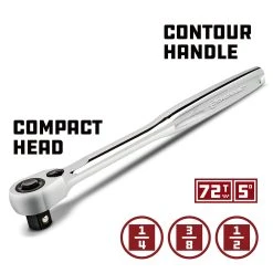 REVERSIBLE RATCHET: The box end features a 72 tooth reversible ratchet with switch control for fast direction change without lifting wrench; requires only 5 degrees to engage