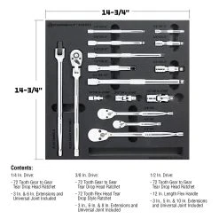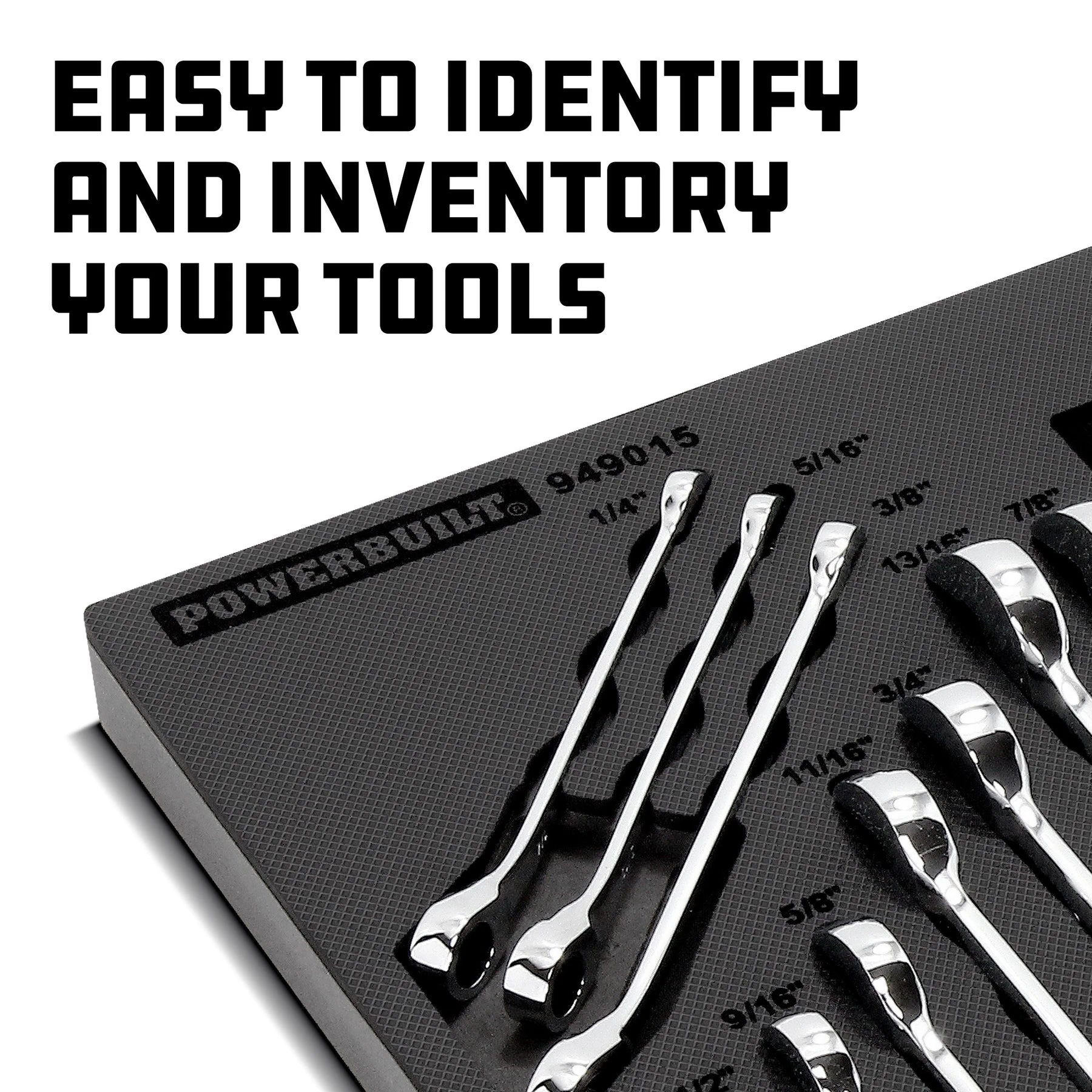 ORGANIZED DRAWER TRAY: The wrench set comes in a laser cut EVA foam tray (8-3/4 inches by 14-3/4 inches) designed to fit in toolbox drawers to keep tools organized and secure; wrench size markings on the tray are great for organization and a quick inventory