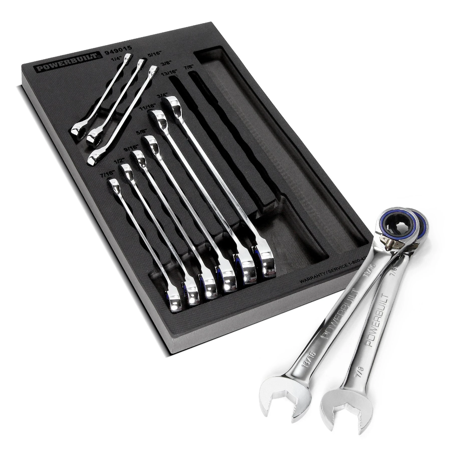 Powerbuilt 11 Piece Pro Tech SAE Reversible Ratcheting Combination Wrench Set
