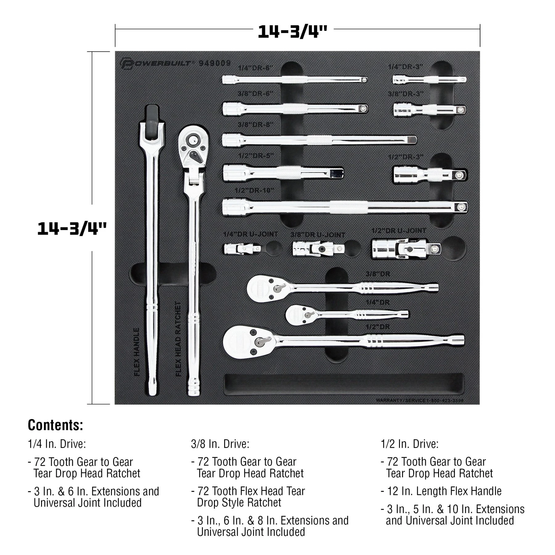 ORGANIZED: Set comes in an EVA foam tray designed to fit in toolbox drawers for better organization; size: 14.75 inches x 14.75 inches