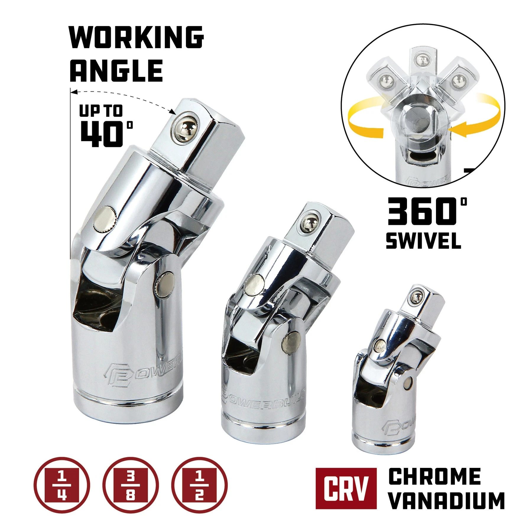Powerbuilt Professional Technician ratchets and socket accessories are built to meet or exceed ANSI specifications. All ratchets are constructed of high-quality Chrome Vanadium (CR-V) steel with mirror polished chrome plated finish. Powerful, precise and stylish, Powerbuilt ratchets and socket accessories offer the look, feel and performance hard-working Techs deserve. A no questions asked replacement policy and lifetime warranty ensure it’ll be a long-term relationship.