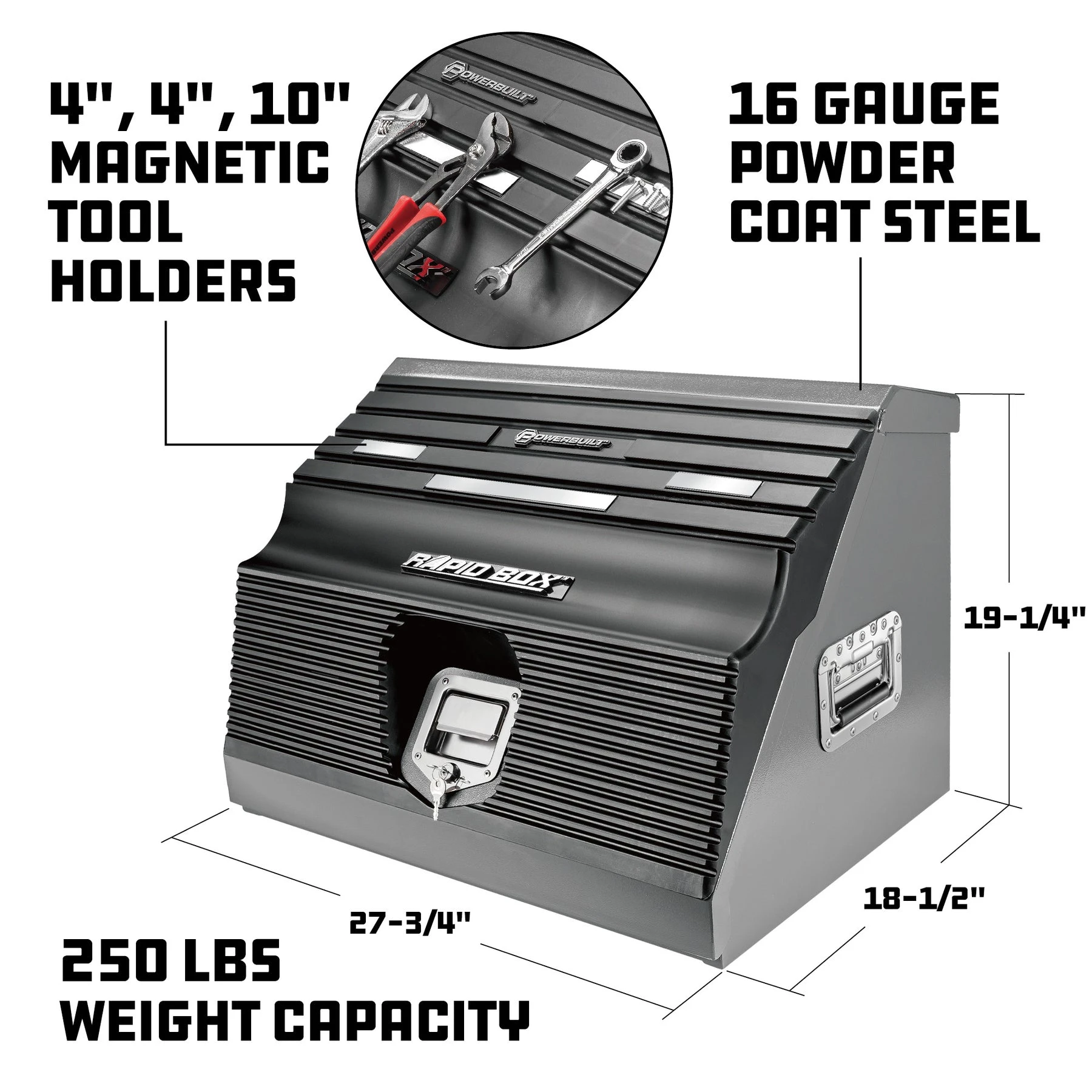 BUILT TO LAST: Constructed from heavy duty polymer and 16 gauge powder coated steel; the box also features fully welded seams and chrome plated hardware