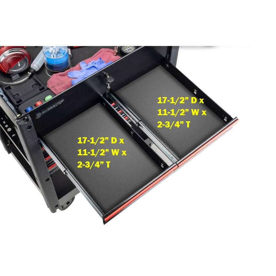 BUILT TO LAST: Precision built using heavy-duty 18-gauge powder coated steel, ball-bearing drawer slides, 5-inch casters and anodized aluminum to drawer pulls. Overall dimensions with pull handle and casters: 35-1/2 (W) x 29-5/8 (D) x 40.75 (H) inches
