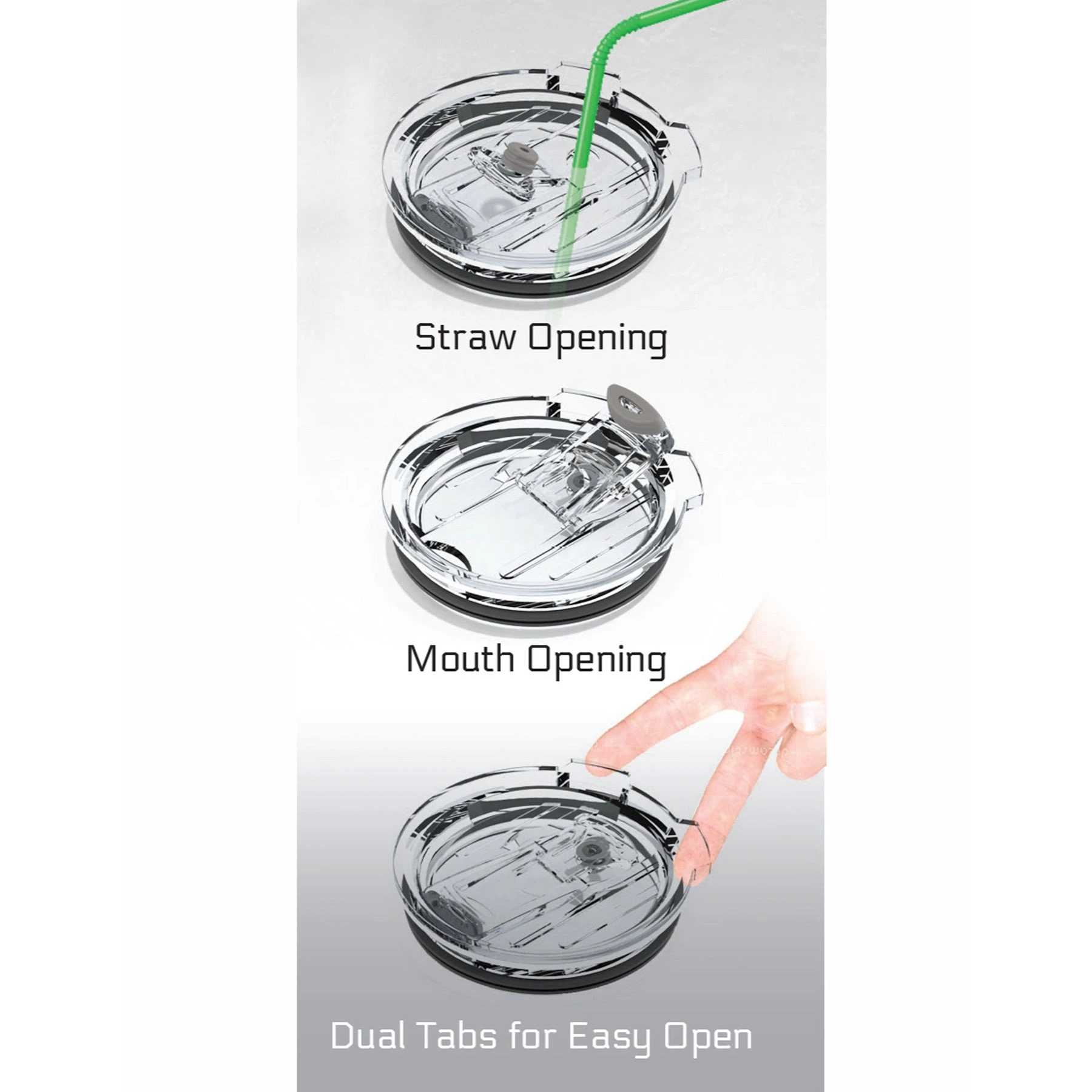 -Lid with a bigger stopper for sip hole and a smaller stopper for straw hole