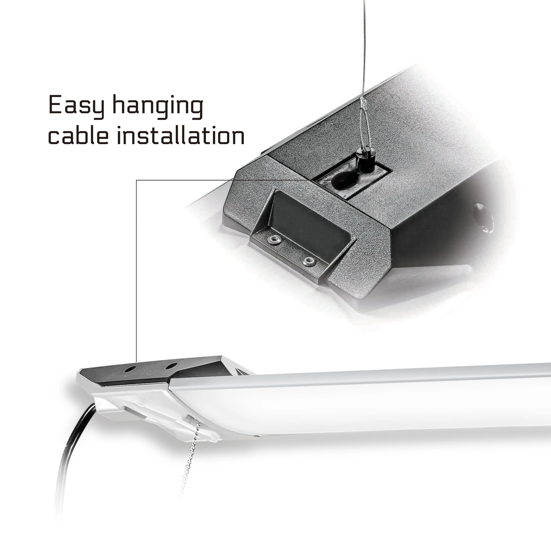 For hassle-free installation, all the mounting hardware you need is included. You can hang them or mount them directly to your ceiling. Have a bigger area to light? Connect up to 10 of these lights by plugging one into the other. No additional wiring is required! Then just pull the chain and enjoy instant-on, flicker-free lighting.