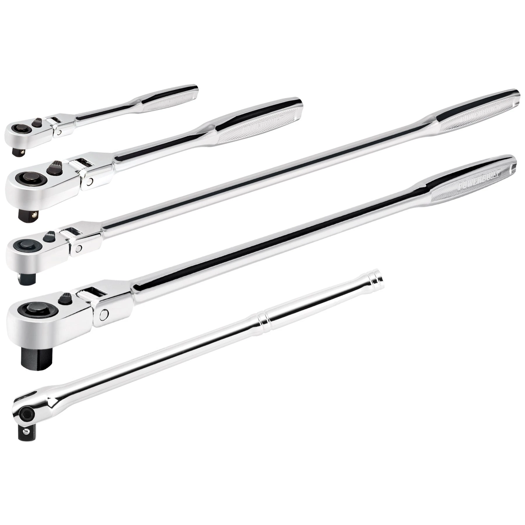 Powerbuilt 5 Piece Pro Tech Flex Head Ratchet And Bar Set