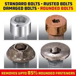 REMOVES DAMAGED BOLTS: Damaged, rusted and up to 85% rounded hex head bolts are no match for Zeon wrenches
