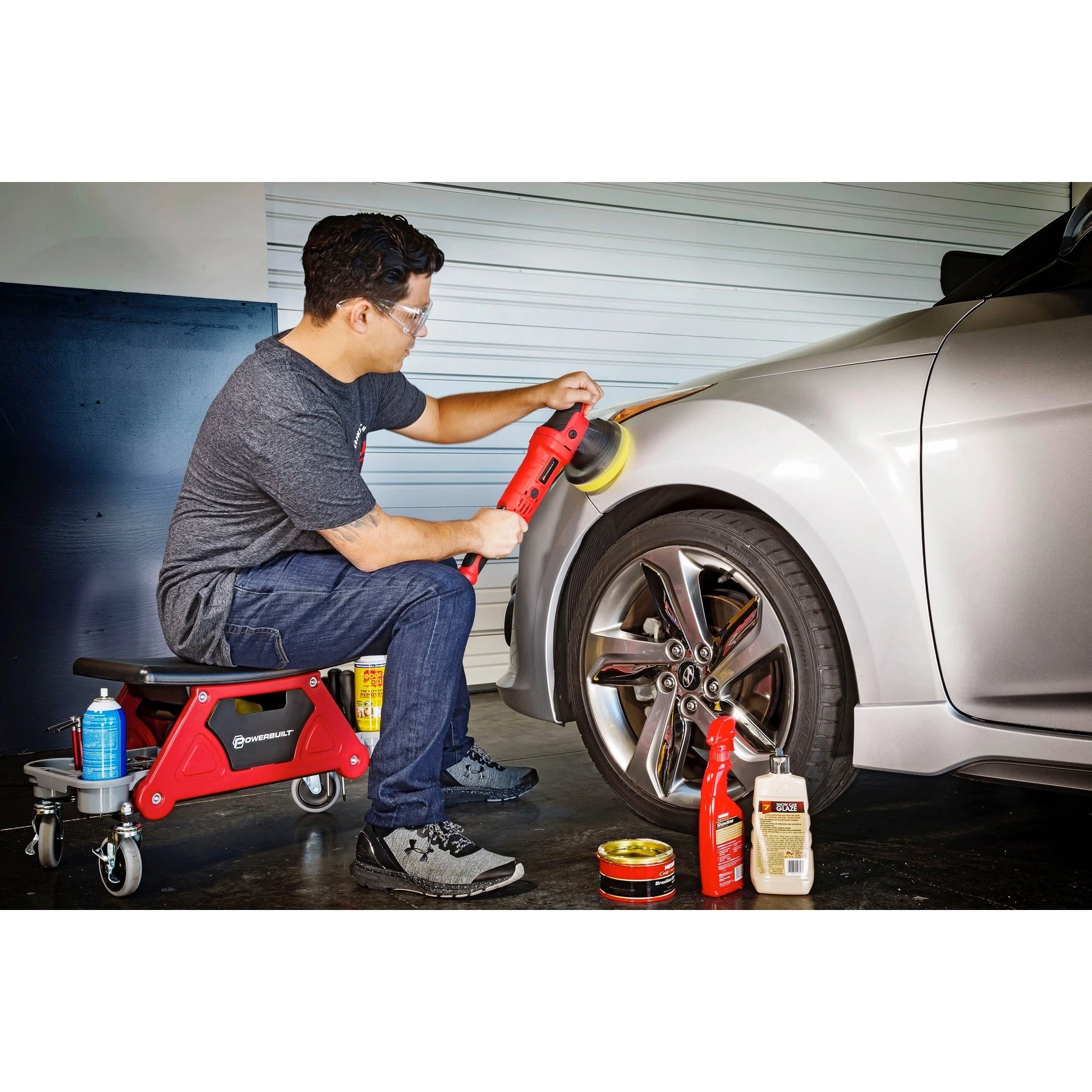 Get on the right level with the Heavy Duty Rolling Work Seat with storage trays. Whether it’s a short project or hours on the clock this solid rolling work seat will be the end of stressful squatting and kneeling. With its robust 4-inch rubber lockable wheel casters it can roll over any surface. Always have the right tools on hand with the full-size pullout drawer and dual over-sized removable trays. The add-on bottle/cup holders are great for spray bottles or a favorite beverage. The comfort is provided by the injected poly-foam concave seat cushion for hours of turning wrenches or detailing. The Heavy Duty Rolling Work Seat is a solid yet comfortable rolling workspace.