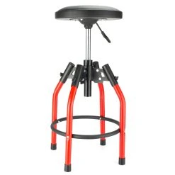 The Powerbuilt Industrial Design Shop Stool is one of the most comfortable, sturdy stools with a rugged industrial look you will ever own. This shop stool is constructed from heavy-duty 1.25-inch powder-coated steel with a comfortable 360-degree swivel foam cushion padded vinyl seat and a built-in footrest; this shop stool is perfect for taking a load off during those long days in the shop. The high-quality finishes of vinyl, chrome, and powder coating make this industrial design shop stool fit right into your professional shop, garage, or bar. Personalize the stool for almost any user or fit under your bench by simply adjusting the right seat height from 28-3/4 inches to 33-1/5 inches with the single lever operated gas spring. This comfy beast has a capacity of 300 pounds.