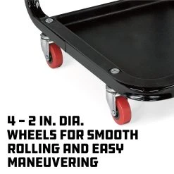A comfy vinyl-covered padded seat makes sitting down on the job a real pleasure while a bottom tray holds parts, tools, cleaners, rags or whatever you need to get to work. Heavy duty 2-inch swivel casters roll without a hitch, letting you maneuver with ease.